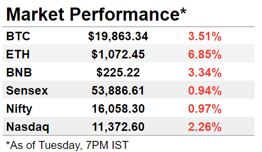 It was another tough day for the markets, with Bitcoin slipping below $20,000 and Ethereum seeing a sharp decline. Awaiting the US inflation data, Nasdaq was in the red. Back home, Sensex and Nifty were flat amidst weak global cues.